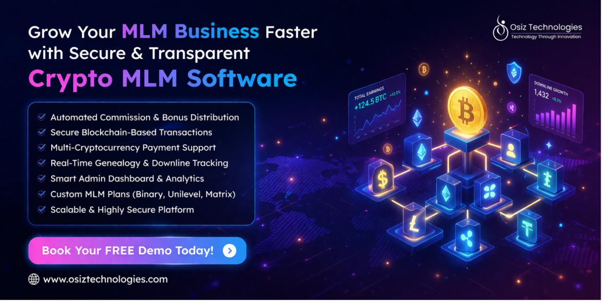 Osiz Technologies offers advanced Crypto MLM Software built with secure blockchain technology to ensure transparent payouts, automated commission management, and seamless network operations.